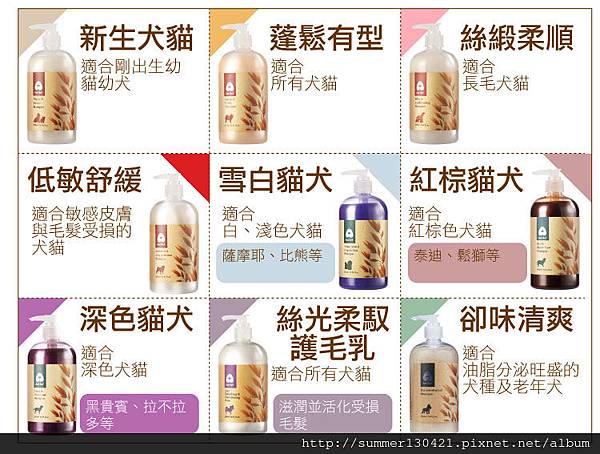 也許能購買紅棕貓犬、雪白貓犬這類的洗劑給寶貝們使用,尤其洗劑搭配護毛乳雙管齊下應該威力更強(?)